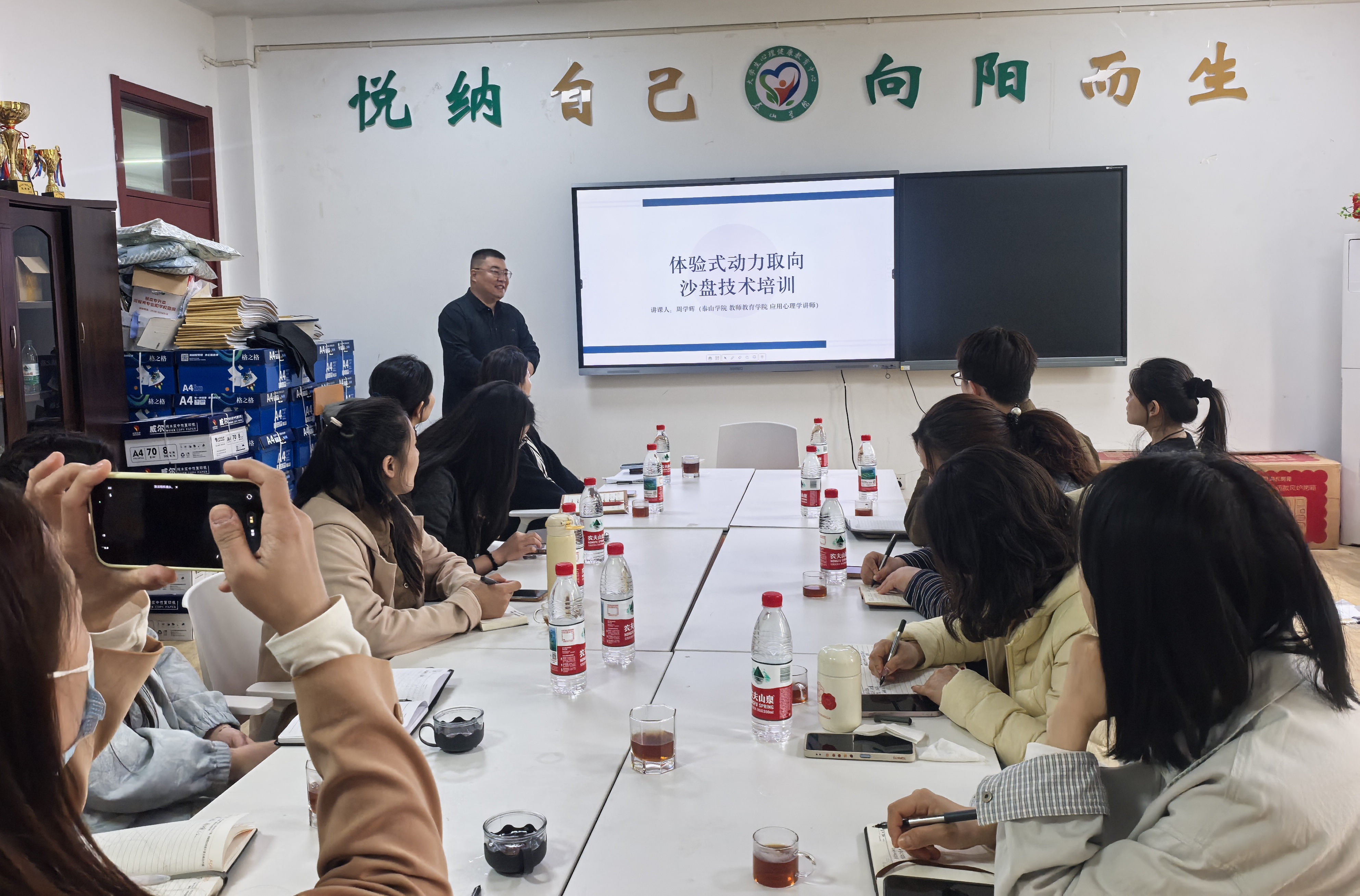4月8日,学生工作处心理健康教育中心邀请我校教师教育学院周学辉博士,面向全体心理辅导员开展体验式动力取向沙盘技术专题培训。