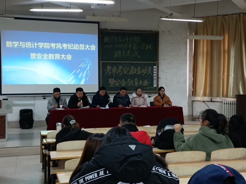 12月29日下午,数学与统计学院在理工楼A2004召开考风考纪动员大会暨安全教育大会。学院党政负责人、团总支辅导员、2018— 2020级各宿舍舍长参加会议。